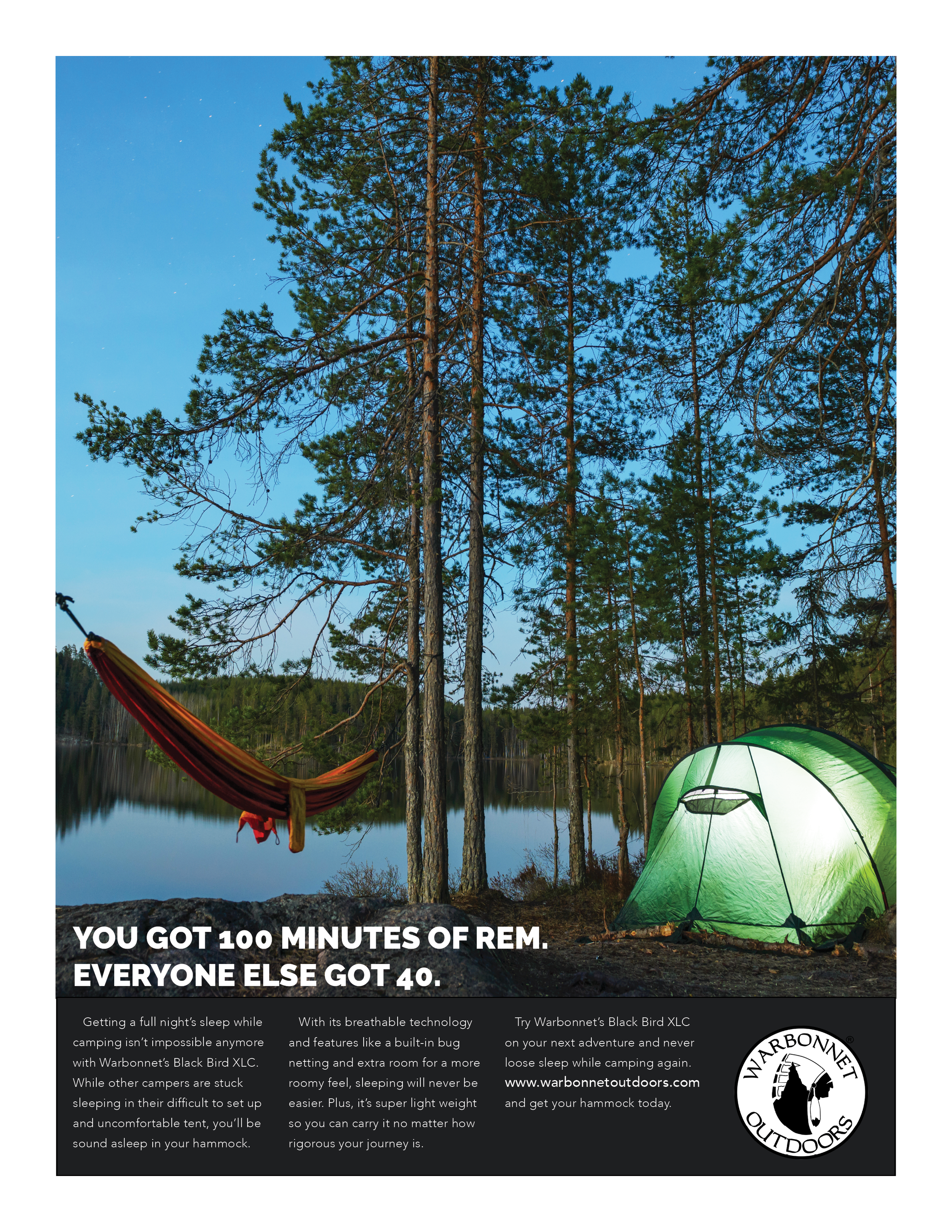 Getting a good night's sleep while camping is hard. After a long exhausting hike, you shouldn’t have to worry about spending hours setting up an uncomfortable tent. With its many customizable features and breathable technology, Warbonnet Outdoor’s Blackbird XLC hammock is the perfect hammock for all hikers and nature lovers.