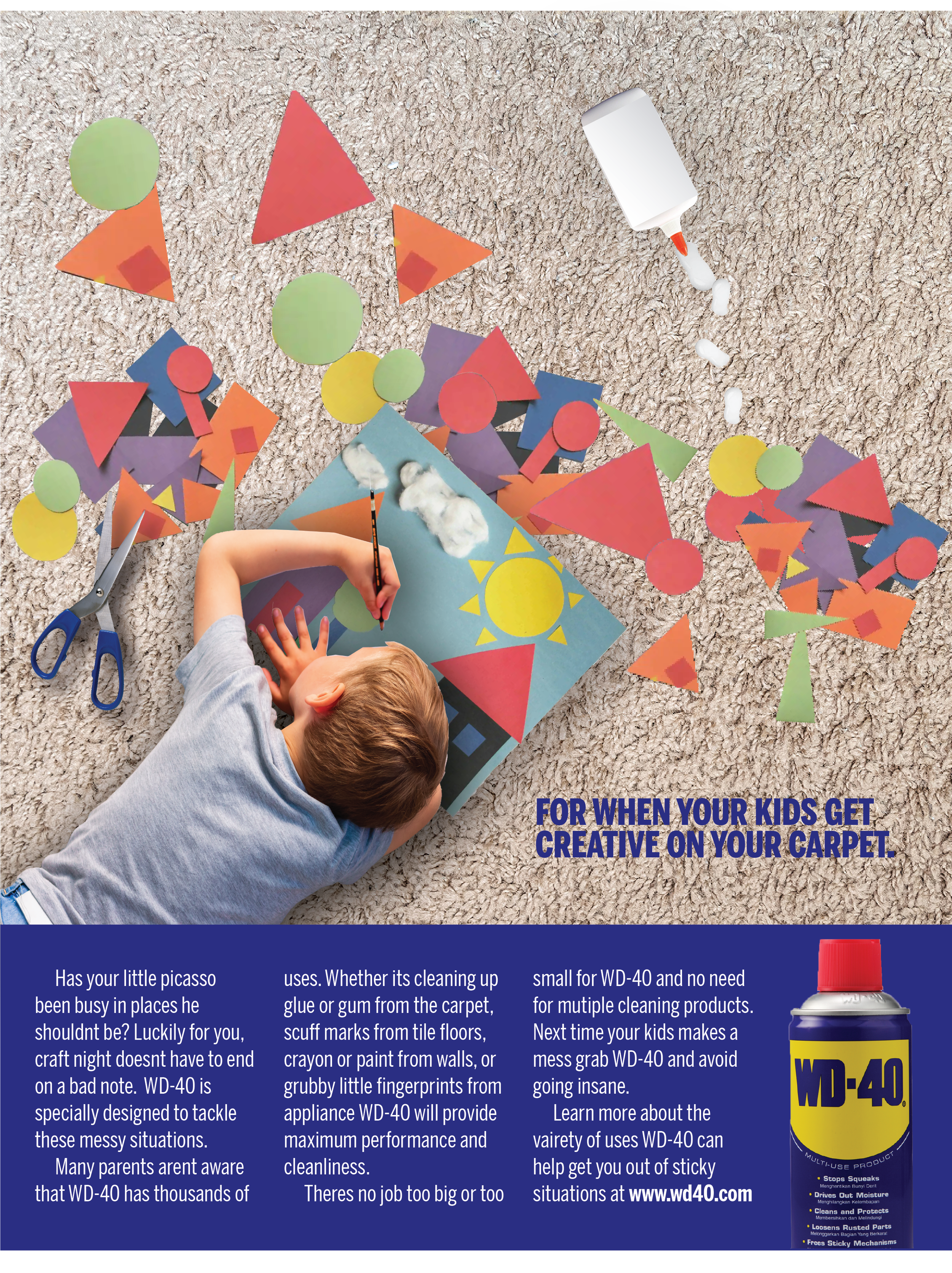 Placed in magazines that parents specifically moms are most likely to read through like People, Good Housekeeping, and Women’s Health. While flipping through their favorite magazine, parents will see the great uses WD-40 has to offer.